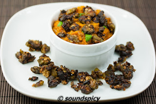 - Chop okra, shallow fry it in a pan till its crispy and set aside.